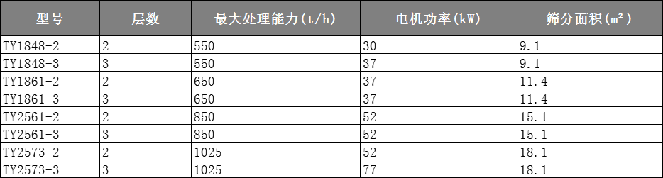 TY 系列振動(dòng)篩為軸偏心橢圓運(yùn)動(dòng)軌跡,確保物料在各種物料條件下實(shí)現(xiàn)高效、可靠、精確的分級(jí) 。